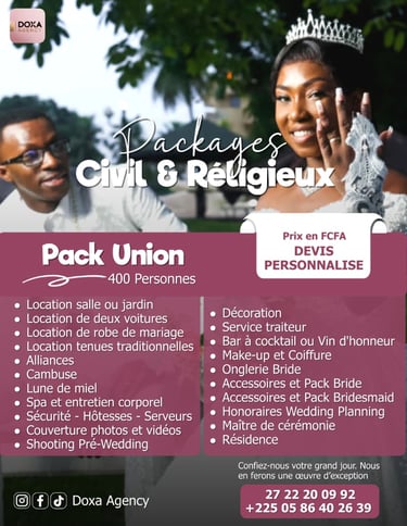 Qu’il s’agisse d’une réception intime, d’une soirée élégante ou d’un grand gala, chaque création de DOXA AGENCY est une invitation à vivre l’exception.